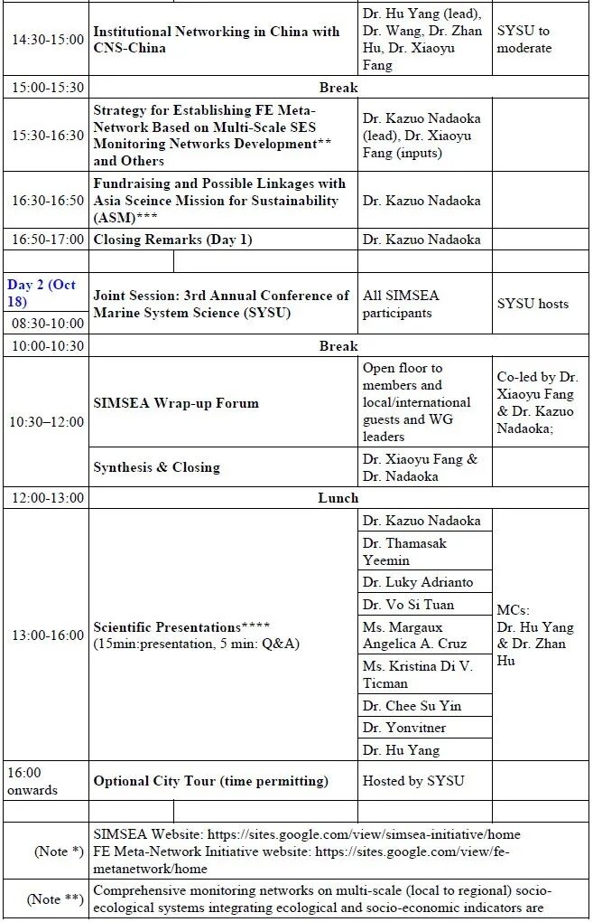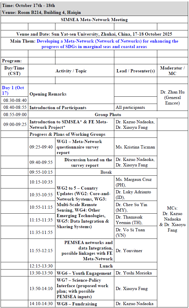 Sustainability Initiative for Marginal Seas of East and Southeast Asia (SIMSEA) (October 17-18)