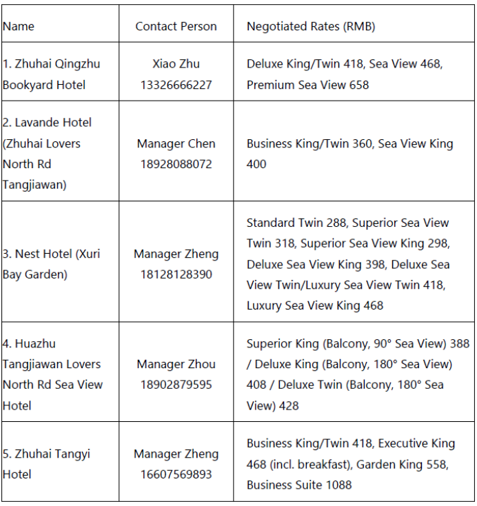 Accommodation:Tan Bojue,17771666410 / 0756-3668776