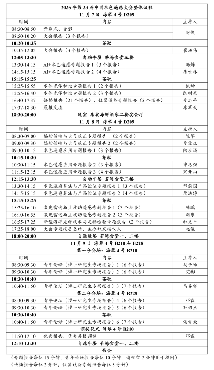 为继续承接这一光荣传统,促进水色遥感与海洋光学学科发展,加强国内外学术交流与合作,推动我国水色事业向更高水平迈进,拟定于2025年11月6-9日在广东珠海召开“第23届中国水色遥感大会”,诚挚邀请国内外各单位同仁汇聚百岛之城珠海,交流成果,探讨问题,展望未来。